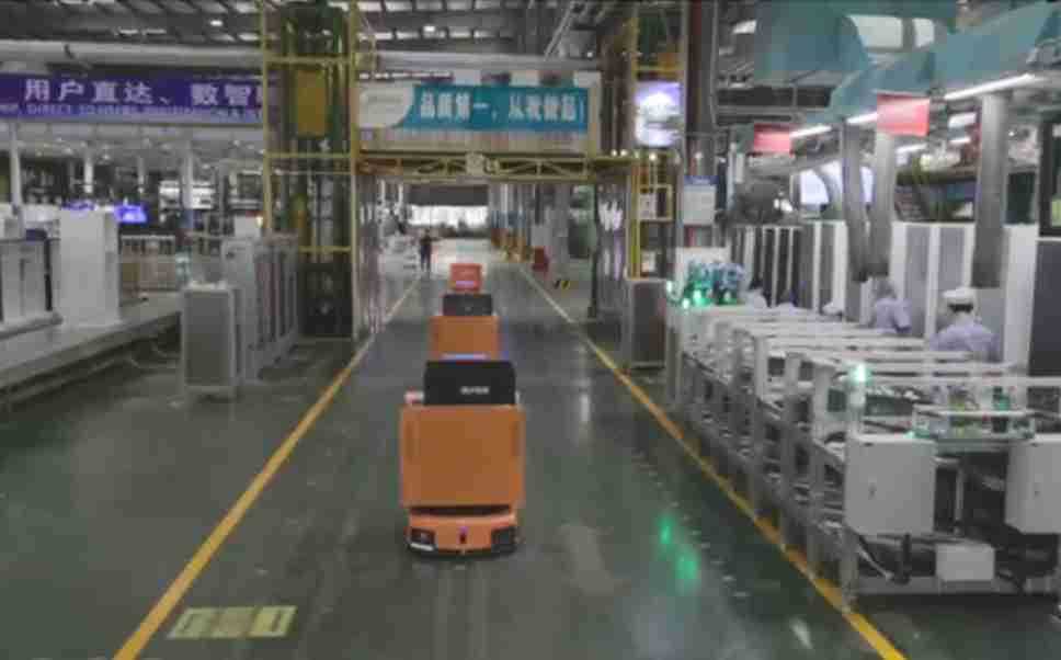 为车载冰箱物流配送打造的智能解决方案,,包含产中物流通过潜伏举升AMR搬运至线边,,产后成品物流智能仓储,,,流程包含产中物流智能齐套入库,,,,线边安灯叫料AMR智能配送至线边,,,成品入库、、、、出库,,,通过无人堆高车机器人,,,,智能仓储管理替代人工作业管理,,实现更高存储、、更高效率、、、、更具柔性化的解决方案。。。