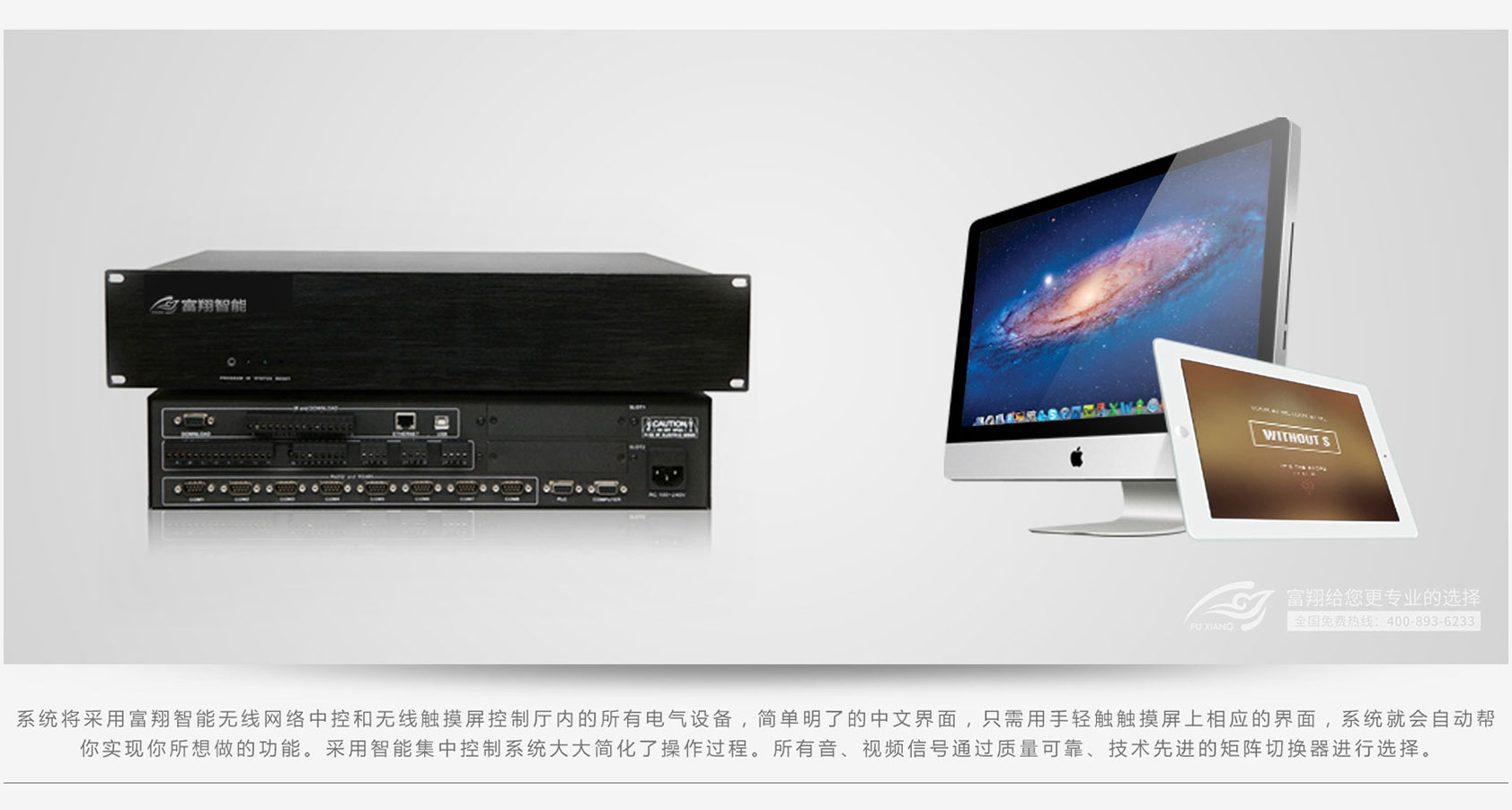 中央控制系统是对声、、光、、电等各种设备进行集中管理和控制的设备,,,,通过计算机和中央控制系统软件控制投影机、、矩阵、、融合器、、、功放、、话筒、、、计算机、、笔记本等电动设备,,,智能化操控,,,省却人工操作、、、、体验超群。。。。