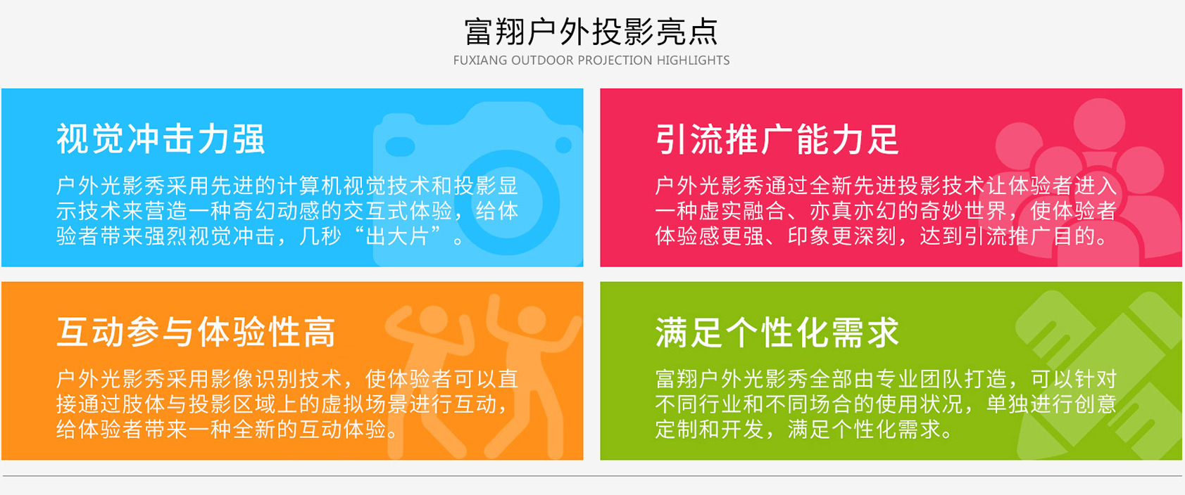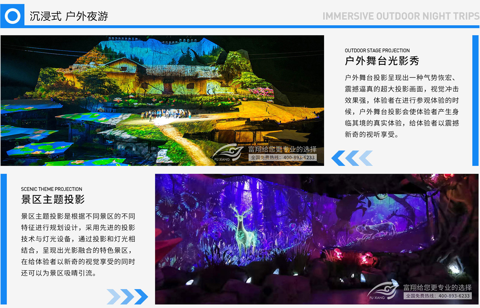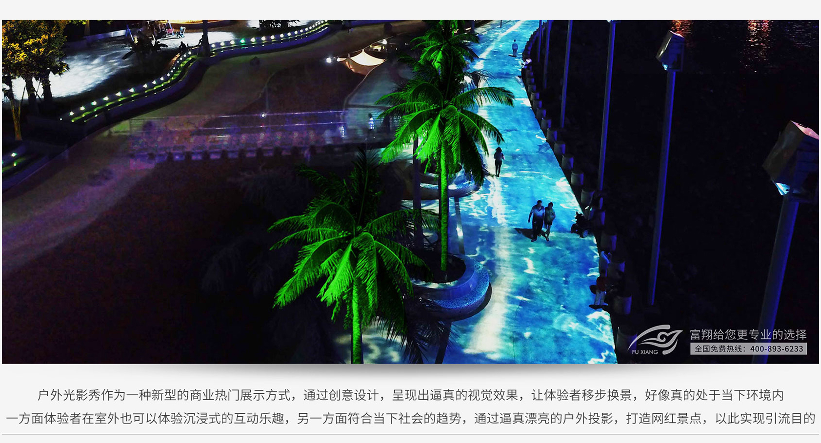 户外光影秀又可以叫做沉浸式夜游,,,,是通过数字内容的创意设计,,使湖光山色、、花鸟虫鱼、、宇宙太空等逼真的视觉效果以投影方式呈现,,,,让体验者仿佛身临其境,,给体验者带来完全不一样的新鲜乐趣体验。。